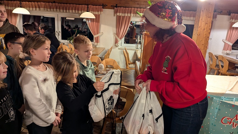 Die Trainerin und Spartenleitung Margit Müller hatte für jedes Kind einen kleinen, individuellen Vers gedichtet und übergab anschließend die liebevoll verpackten Weihnachtsgeschenke.